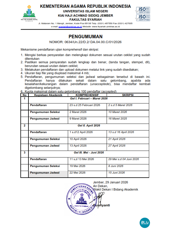 Sambut Ramadan 1447 H/2026 M, Fakultas Syariah UIN KHAS Jember Rilis Jadwal