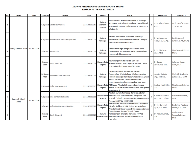 PENGUMUMAN JADWAL UJIAN PROPOSAL SKRIPSI 4-12 MARET 2026