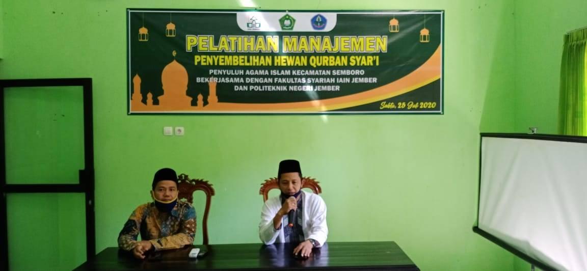 Peran Perguruan Tinggi tidak hanya sebagai pusat pendidikan dan penelitian, namun juga memiliki peran untuk melakukan pengabdian ke masyarakat dalam mensosialisasikan ilmu agama maupun ilmu umum. Menjelang Idul Adha, Kantor Urusan Agama Kecamatan Semboro bersama Fakultas Syariah IAIN Jember dan Politeknik Negeri Jember menggagas acara Pelatihan Manajemen Penyembelihan Hewan Kurban Syar’i yang diselenggarakan pada hari Sabtu (25/7) pukul 10.00-13.00 WIB di Aula Kantor Urusan Agama Kecamatan Semboro.