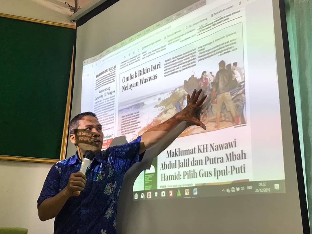 Kamis, (26/12/2019) Fakultas Syariah IAIN Jember kembali adakan Evaluasi dan Penguatan Jurnalistik yang bertempat di Ruang VIP Lantai 2 Fakultas Syariah IAIN Jember. Kegiatan ini berlangsung pada pukul 08.30 WIB dengan menghadirkan pemateri yang mumpuni dalam bidang komunikasi yakni Dr. Kun Wazis M.I.Kom.