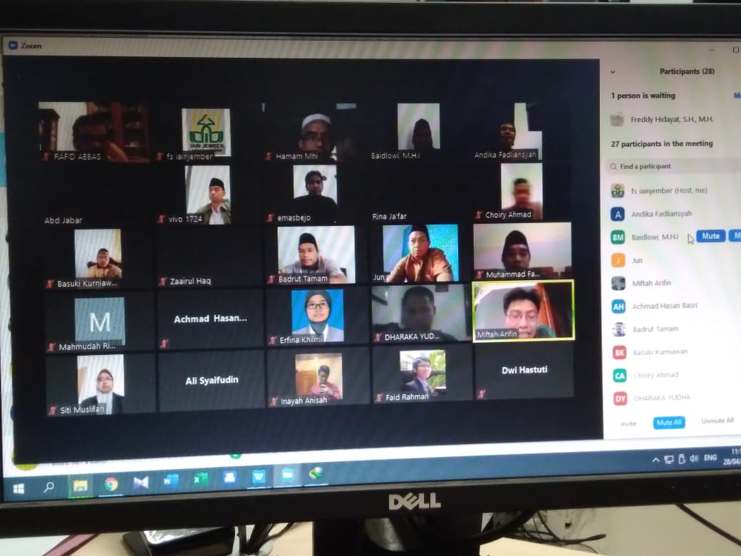Jember, Media Center. Demi layanan maksimal terkait teknis perkuliahan online, Fakultas Syariah adakan rapat koordinasi dan evaluasi bersama dosen di Lingkungan Fakultas Syariah IAIN Jember pada Selasa, 28 April 2020.