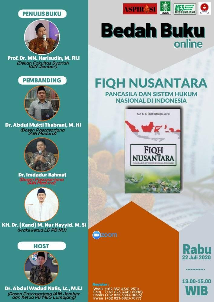 Pada Hari Rabu, 22 Juli 2020, Asosiasi Penulis dan Peneliti Islam Nusantara Seluruh Indonesia (ASPIRASI) bekerja sama dengan PD Masyarakat Ekonomi Syariah (MES) Lumajang dan Lembaga Dakwah PBNU didukung oleh PMII Komisariat IAIN Jember dan UKPK IAIN Jember berhasil menyelenggarakan acara bedah buku” Fiqh Nusantara” yang sangat menarik tersebut.