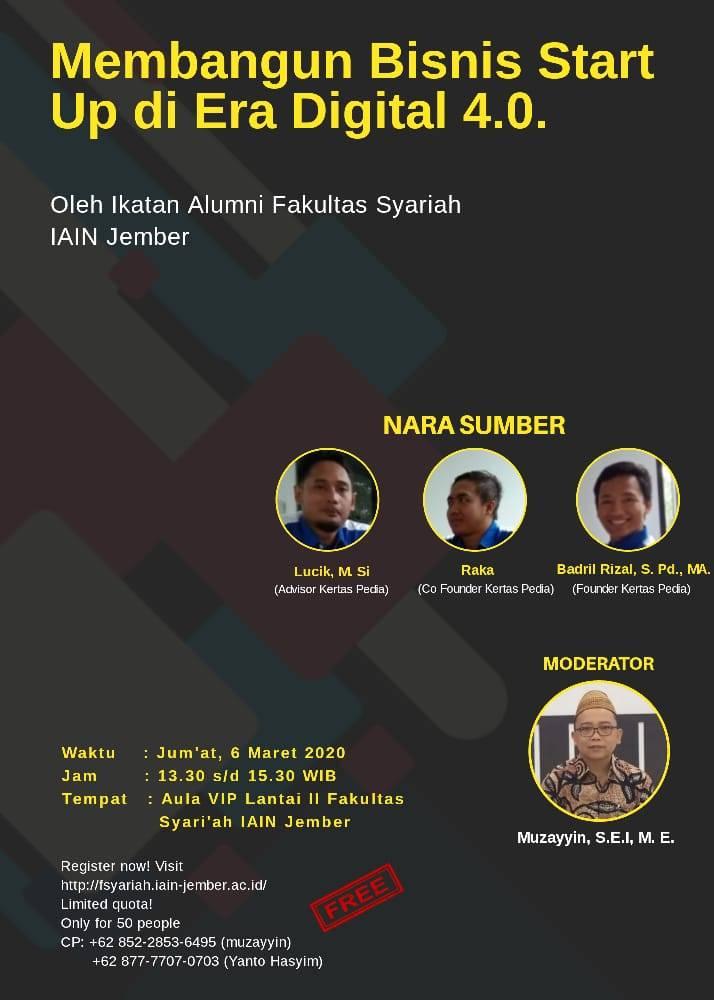 HADAPI ERA DIGITAL 4.0 IKA FAKULTAS SYARIAH ADAKAN SEMINAR BISNIS START UP
