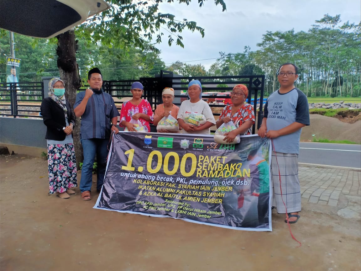 Pemberian paket sembako dilakukan mulai 13 Mei 2020. Lokasi pertama pemberian kegiatan paket sembako ini ada di tiga kecamatan; Kaliwates, Ajung dan Sukorambi dengan melibatkan panitia yang terdiri dari Fakultas Syariah, IKA Fakultas Syariah, UPZ. Darul Hikam, LKBHI, dan DPC APSI. Dengan langsung door to door ke rumah penerima sembako, menjadikan kegiatan ini sangat tepat sasaran. Pemberian 1000 paket sembako akan diberikan secara bertahap pada masyarakat Jember secara merata hingga akhir Ramadlan 1441 H nanti.