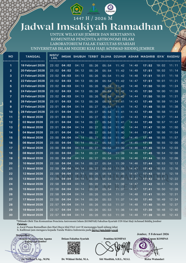 Sambut Ramadan 1447 H/2026 M, Fakultas Syariah UIN KHAS Jember Rilis Jadwal Imsakiyah