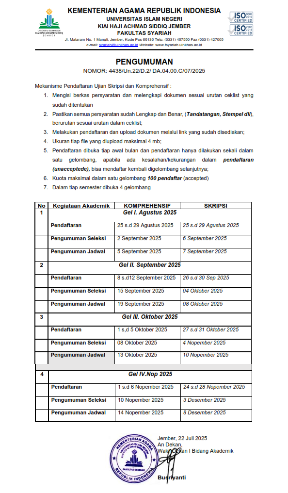 Mekanisme Pendaftaran Ujian Skripsi dan Komprehensif :