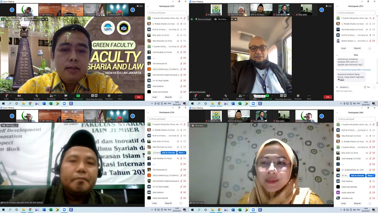 Media Center- Isu yang dialami oleh lembaga antirasuah di Indonesia atau KPK (baca: Komisi Pemberantasan Korupsi) selalu menarik perhatian publik. Dengan itu, Forum Dekan Fakultas Syariah dan Hukum PTKIN Seluruh Indonesia mengadakan acara Silaturahmi Syawal dan Diskusi Publik dengan tema “Merawat Semangat Pemberantasan Korupsi” melalui aplikasi Zoom Meeting pada Kamis Pukul 13.00 WIB (20/05).