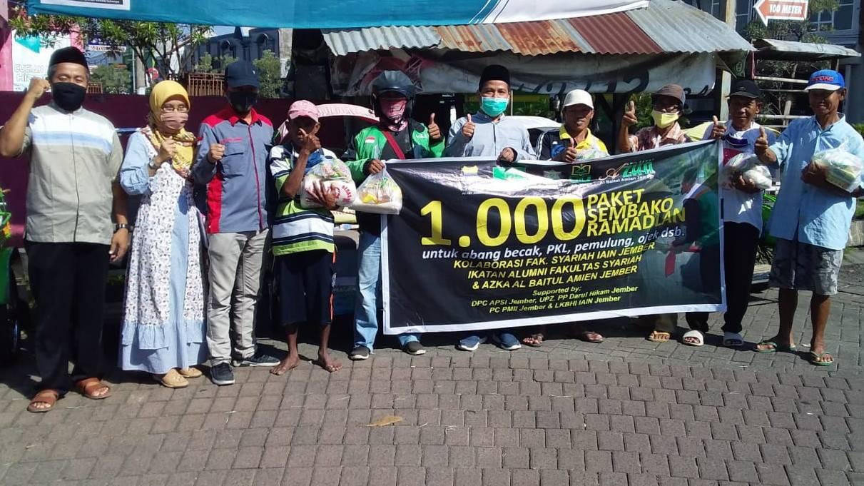 Keluarga Besar Alumni Fakultas Syariah atau yang dikenal dengan nama “KASYFA”, mengikuti rangkaian kegiatan gerakan 1000 paket sembako atau yang disingkat sepako untuk korban terdampak Covid-19. Untuk diketahui, Kasyfa merupakan komunitas yang didirikan pada tanggal 17 April 2018 oleh Yanto Hasyim, S.H., dengan harapan mampu menyatukan para alumni Fakultas Syariah IAIN Jember.