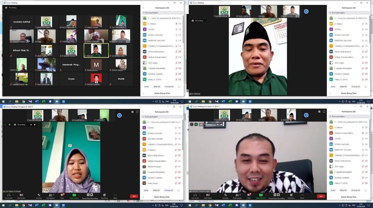 Halal bi halal tahun ini menjadi berbeda, kondisi pandemi covid-19 yang belum berakhir memaksa acara ini dilaksanakan dengan cara daring. Meskipun demikian, acara ini tetap terselenggara dengan baik dan inspiratif. Narasumber yang dihadirkan pun tidak tanggung-tanggung. Mulai dari alumni yang menjadi Direktur Pascasarjana IAIN Ponorogo, Dr. Aksin Wijaya, M.Ag., sekretaris Pengadilan Agama Kangean Madura, Ahdiyat Ilmawan Nehru, S.H.I., M.H., DPRD Komisi II Bondowoso, Ali Mansur, S.H.I., M.Hum., dan Advokat sekaligus pengusaha, Uul Fathur Rohmah, S.H.I. Semuanya merupakan alumni Fakultas Syariah yang kini sukses dibidangnya masing-masing. Selain dari alumni Fakultas Syariah, acara ini dihadiri nara sumber dari luar alumni, yang juga Kepala Cabang Bank Syariah Mandiri, H. Muntaha Mahfud. H Mahfud merupakan alumni Universitas Gadjah Mada (UGM) yang tergabung dalam Keluarga Alumni Universitas Gadjah Mada (KAGAMA).