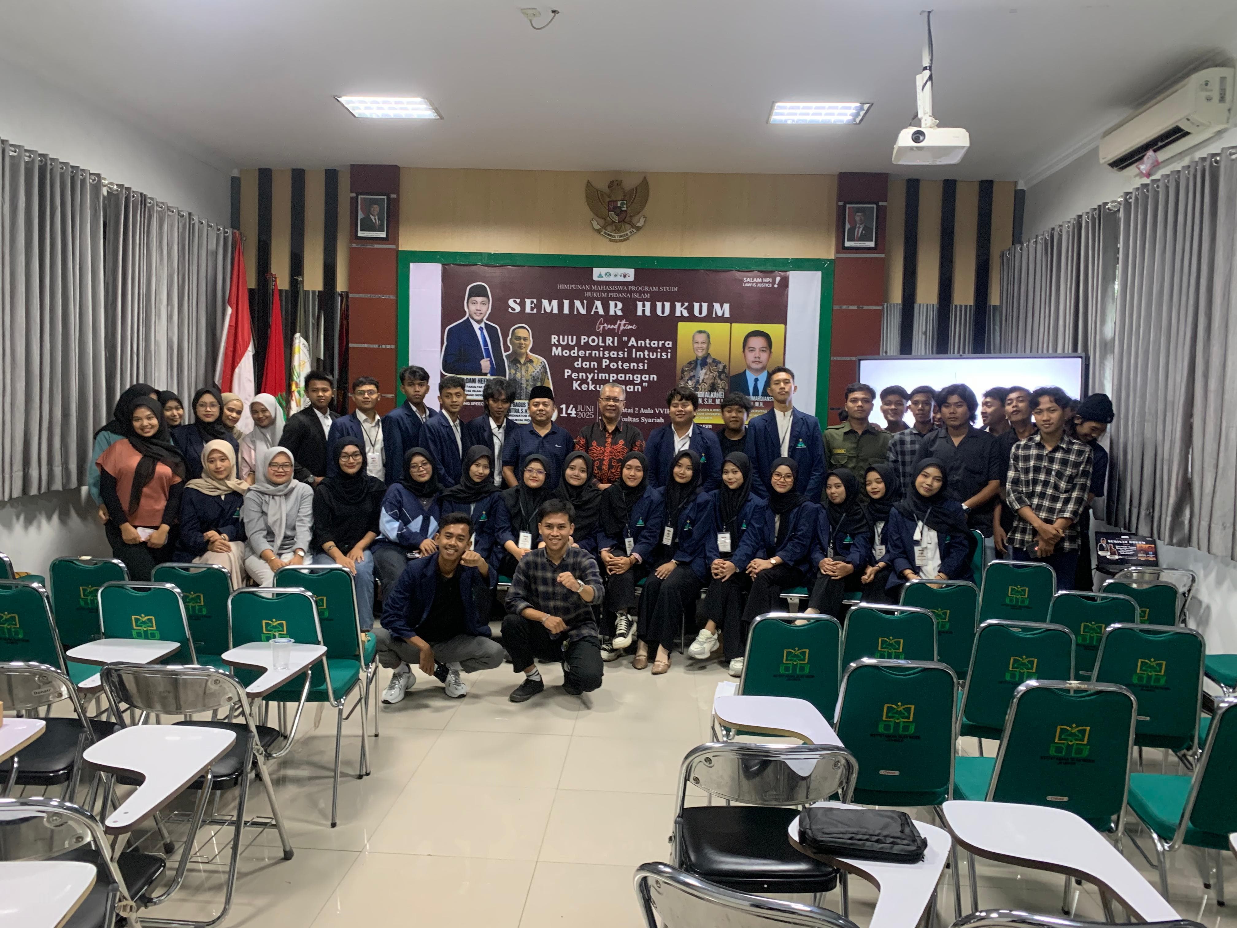 Jember, - Fasya Media- Pengurus Himpunan Mahasiswa Program Studi Hukum Pidana Islam (HMPS HPI) Fakultas Syariah UIN Khas Jember menggelar Seminar hukum dengan tema “Ruu Polri Antara Modernisasi Intuisi dan Potensi Penyimpangan Kekuasaan”. (14/06/2025)