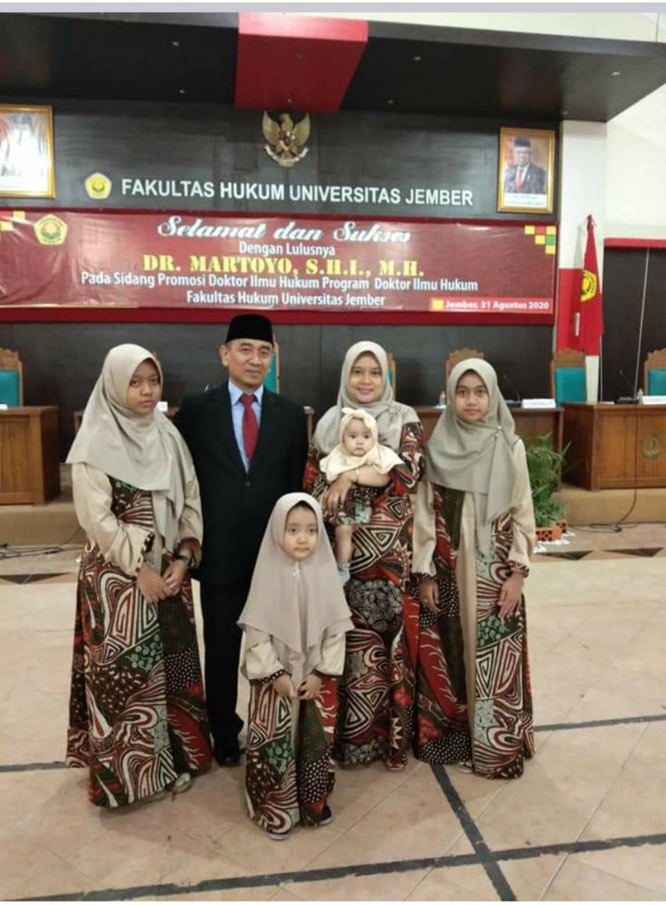 Tepat 31 Agustus 2020, menjadi babak baru pencapaian Martoyo. Menyabet gelar Doktor Ilmu Hukum dengan konsentrasi Hukum Ekonomi menjadikannya semakin sempurna dalam dunia akademisi. Semua pencapaian Martoyo tidak terlepas dari prinsip yaitu bahwa setiap keinginan pasti diamini oleh Allah. Jikalau pada prosesnya mengalami kegagalan, pada hakikatnya itu adalah proses untuk lebih baik. Terlebih peran istri yaitu Linda Novaliana Sari, S.E.I. dan keempat anak diataranya Mahmydatul Abadiyah Al Bariza, Feyza Rasyadah Karimah, Hefiza Khaira Qatrunnada, dan Amirah Fedya Hasma juga menjadi penentu kesuksesan sosok Martoyo