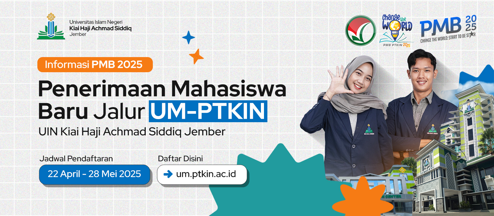 Jember - Pendaftar seleksi masuk UIN Kiai Haji Achmad Siddiq Jember yang belum beruntung di jalur prestasi Seleksi Prestasi Akademik Nasional-Perguruan Tinggi Keagamaan Islam Negeri (SPAN-PTKIN) tidak perlu kecewa. Kini, calon mahasiswa dapat mencoba kembali pada seleksi jalur Ujian Masuk-Perguruan Tinggi Keagamaan Islam Negeri (UM-PTKIN) 2025. Seleksi jalur UM-PTKIN 2025 dibuka mulai tanggal 22 April hingga 28 Mei 2025.