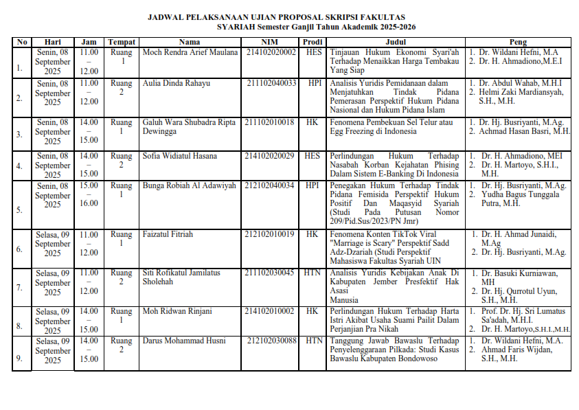 PENGUMUMAN UJIAN PROPOSAL SKRIPSI 8 - 9 SEPTEMBER 2025
