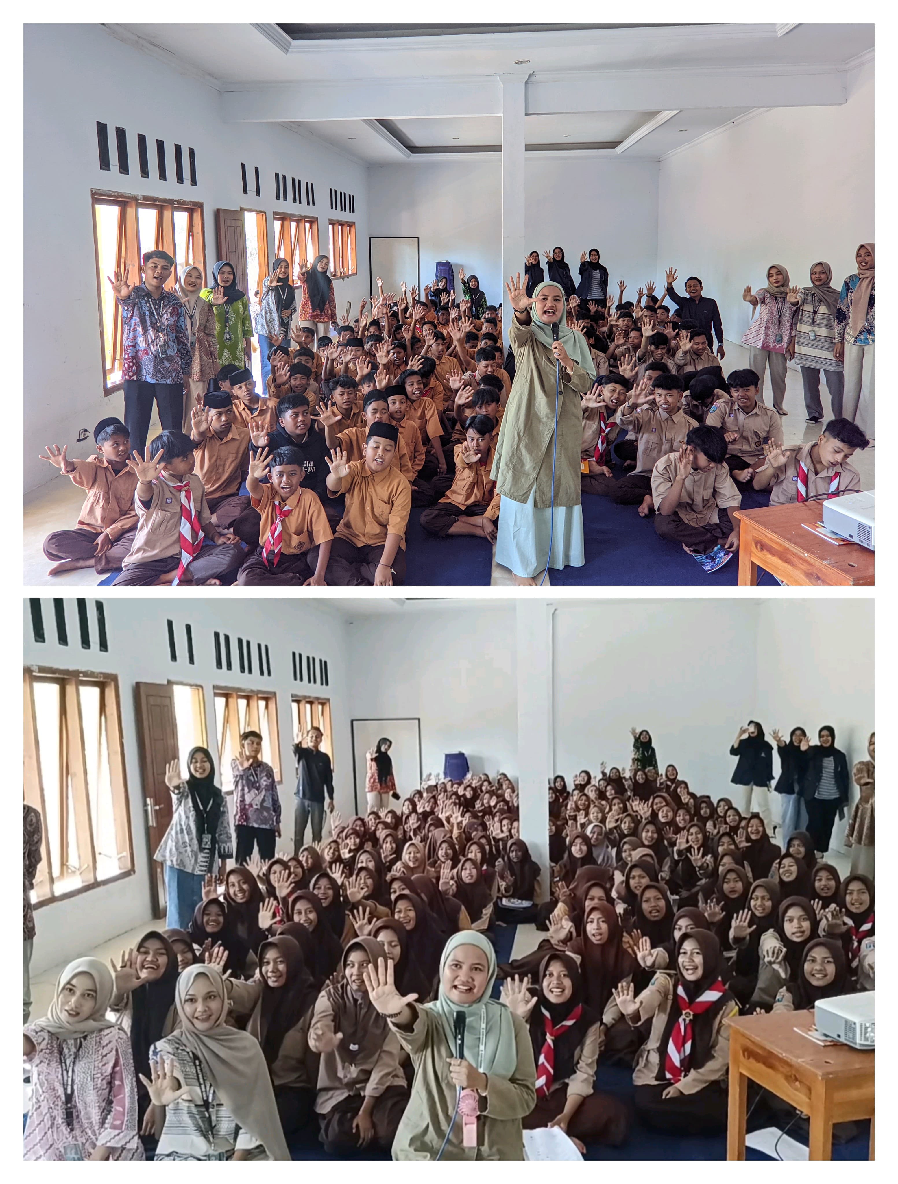 Jember, Fasya Media - Pusat Studi Hukum Keluarga, Gender, dan Anak (PUSHAGA) Fakultas Syariah UIN Kiai Haji Achmad Siddiq Jember berkolaborasi dengan mahasiswa Kuliah Kerja Nyata Kolaboratif (KKN-K) menggelar kegiatan Sosialisasi Edukasi Pernikahan Dini dan Stunting (SEHATI) bertema "Membangun Generasi Cerdas, Sehat, dan Berprestasi". Kegiatan ini dilaksanakan di Madrasah Tsanawiyah (MTs) dan Madrasah Aliyah (MA) Pondok Pesantren Raudlatul Jannah, Desa Tegalrejo, Kecamatan Mayang, Kabupaten Jember, dan diikuti lebih dari 300 siswa dalam dua sesi terpisah untuk laki-laki dan perempuan. (08/08/2025).