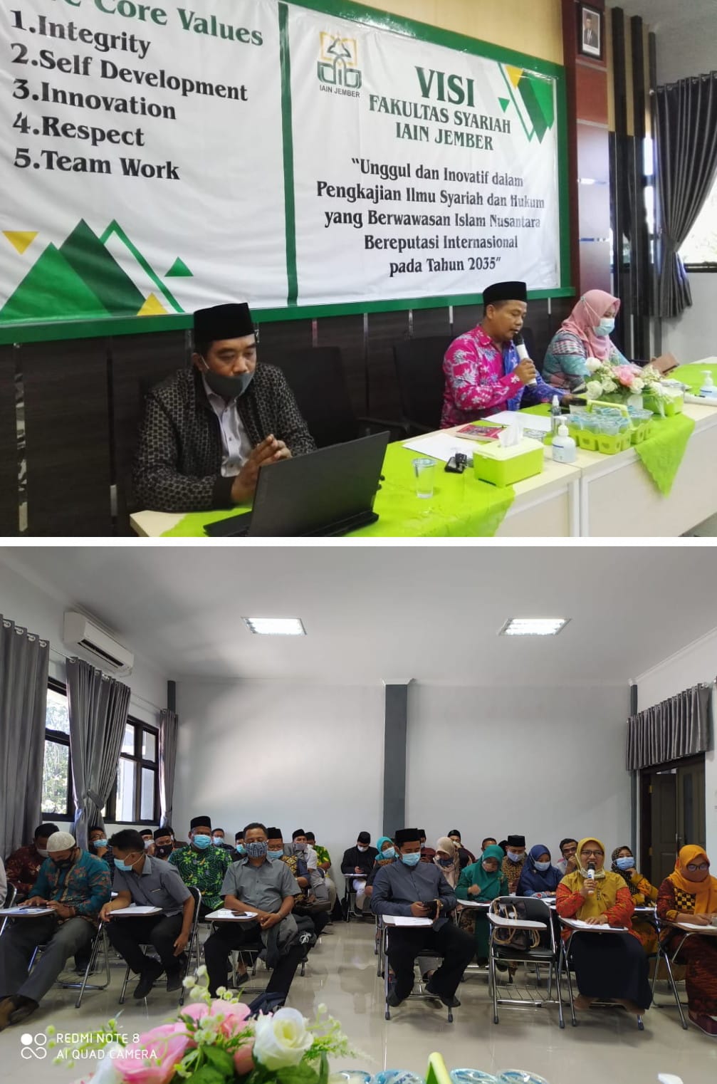 “Transformasi kampus IAIN Jember menjadi UIN KHAS Jember perlu adanya suatu perubahan. Perubahan cara berfikir, bertindak dan bekerja tentunya dengan berpedoman pada five core values yang meliputi integrity, innovation, self-development, respect dan team work serta menuju tahun publikasi kita sedang membuat perpustakaan dalam e-library agar dosen dapat menyumbang buku, dan karya-karyanya,” terang Prof Haris yang juga sebagai Sekretaris Forum Dekan PTKIN se-Indonesia.