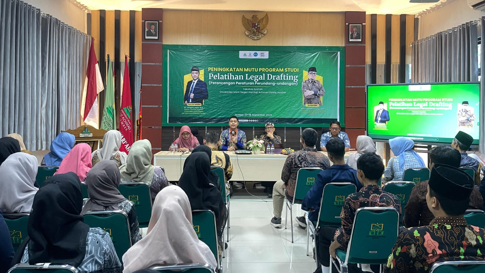 Jember (Fasya Media) --- Fakultas Syariah Universitas Islam Negeri Kiai Haji Achmad Siddiq (UIN KHAS) Jember memberi pelatihan perancangan peraturan perundang-undangan bagi para mahasiswa. Pelatihan ini bertujuan memfasilitasi mahasiswa dalam keahlian Legal Drafting (praktik hukum yang menghasilk...
