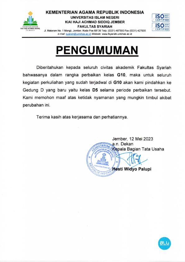 Sambut Ramadan 1447 H/2026 M, Fakultas Syariah UIN KHAS Jember Rilis Jadwal Imsakiyah